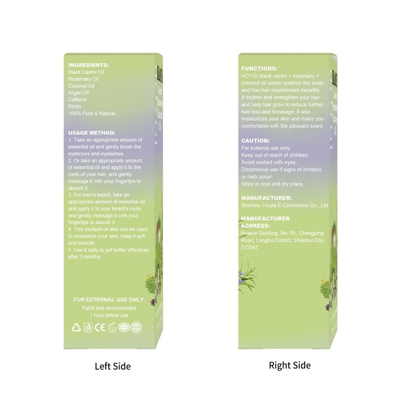 - 【Black Castor Oil Rosemary Oil 6 in 1 Serum】 HOYGI Black Castor Oil with Coconut Oil Rosemary Oil for Hair Growth 6-in-1 Serum is a lightweight and non-greasy essential oil. It is effective in hair growth and skin moisturizing.