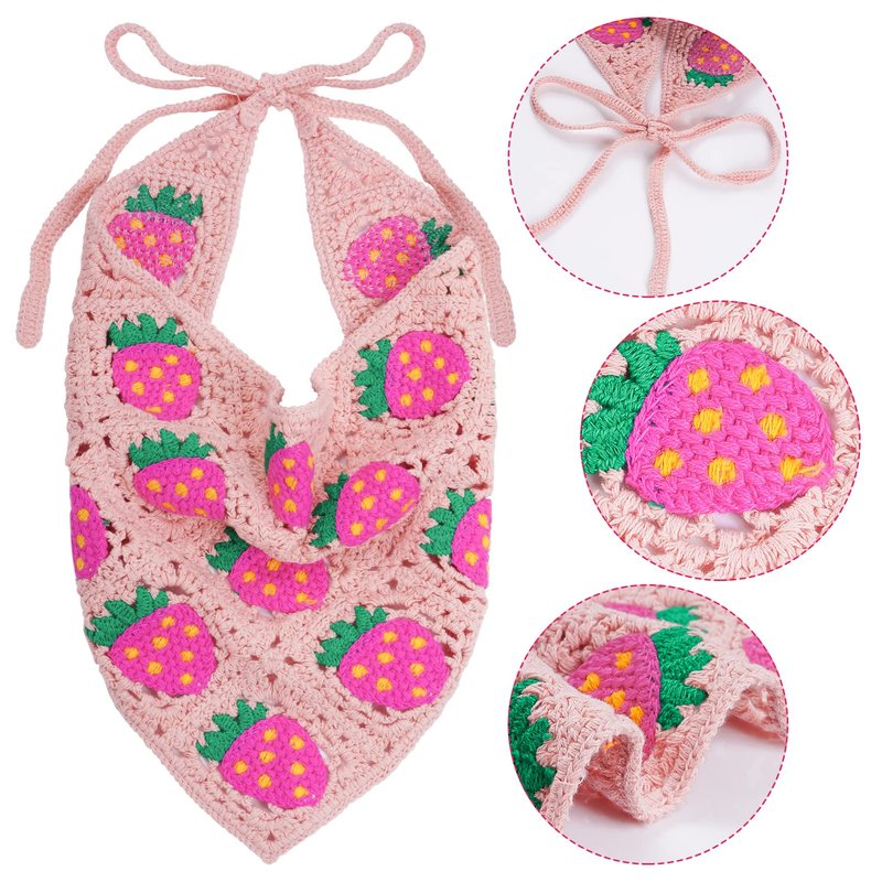 hoyuwak 3pcs Strawberry Crochet Head Scarf Bandanas Headbands Hair Scarf Head Coverings Hair Accessories for Women Hair Styling Valentine's Day Holiday Decor