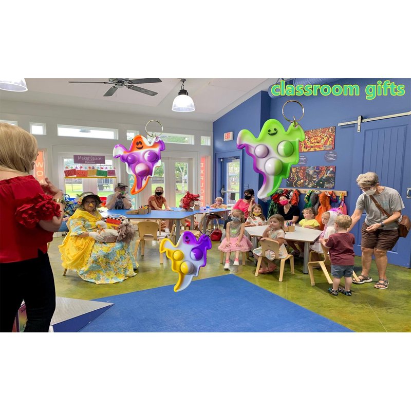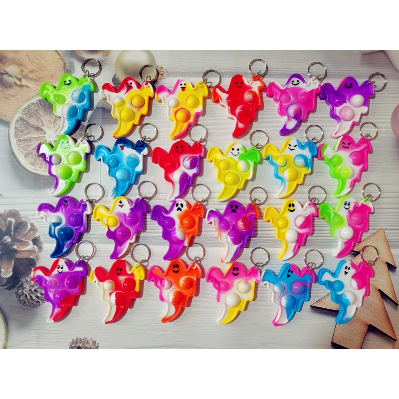 - 2,Made of silicone,package included:24 packs ghost mini pop Halloween shape key chains,Random color to send