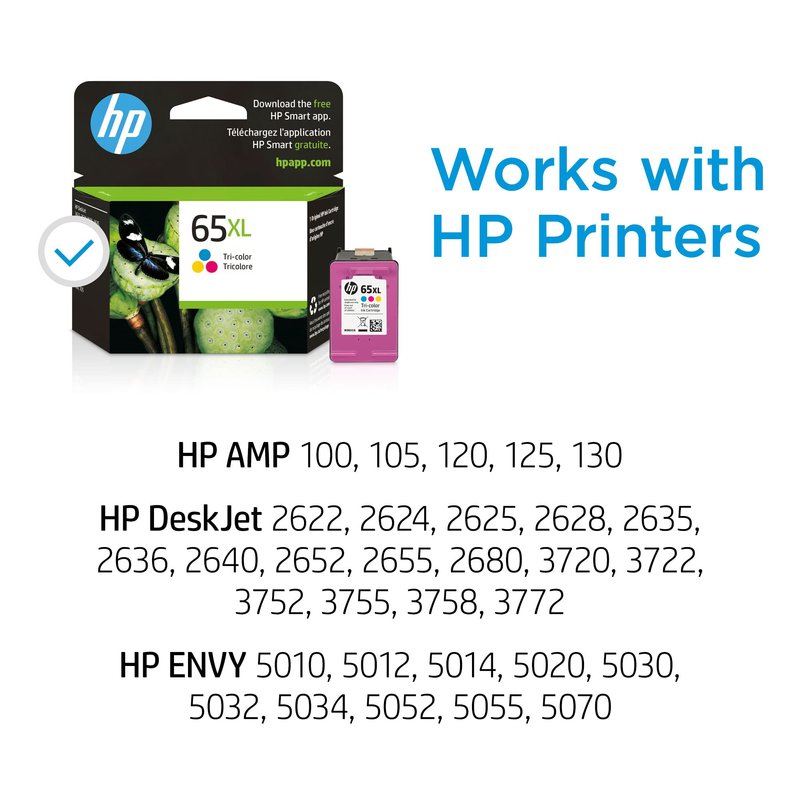 HP 65XL Tri-color High-yield Ink Cartridge | Works with HP AMP 100 Series, HP DeskJet 2600, 3700 Series, HP ENVY 5000 Series | Eligible for Instant Ink | N9K03AN