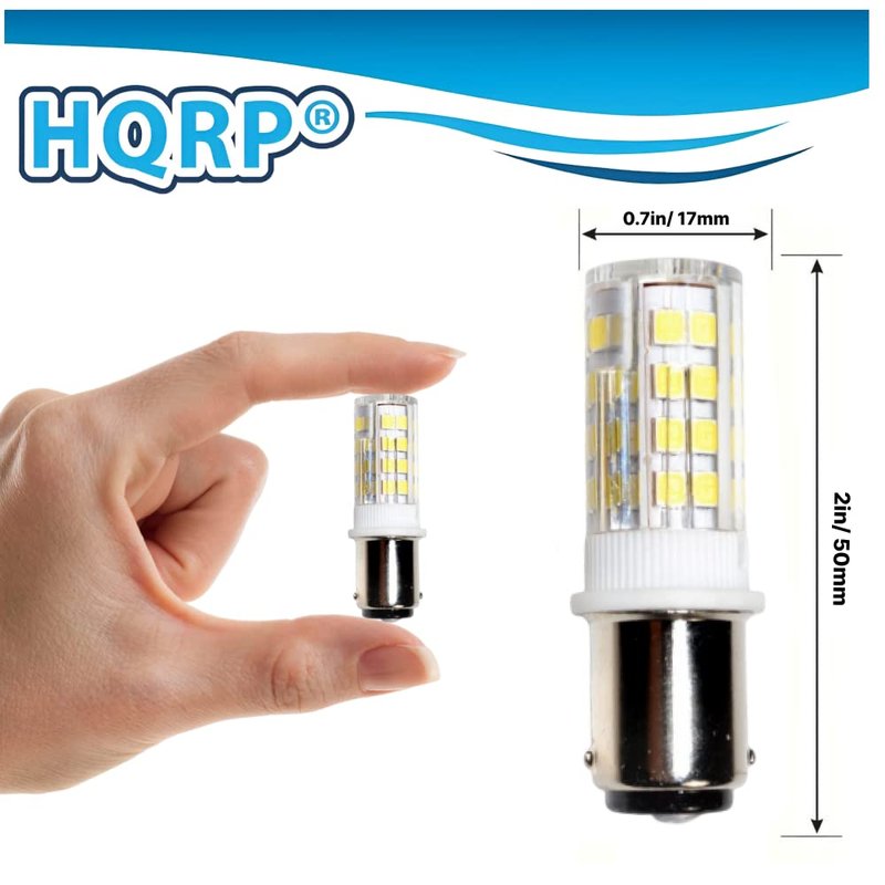 HQRP BA15d Base 52 LEDs SMD 2835 LED Sewing Machine Light Bulb Cool White 6000-6500K 3W 110V.HQRP LED Bulbs are high-quality and high-efficiency LED lights, and have lots of advantages as compared to incandescent bulbs. Efficiency - due to low energy consumption HQRP LED bulbs consume several times less energy than incandescent bulbs in the same operation period, while output lumen of our LED lights is no less than of the corresponding incandescent bulbs. Safety - due to the use of LED technology our LED lights are not heated, unlike incandescent bulbs, so there is no hazard of burning your hand if you work near a LED light or touch it during operation. Durability - due to high quality materials used in our LED lights, service life duration of HQRP LED Bulb by more than 30 times exceeds incandescent bulb's service life duration. Using our LED lights, these benefits may provide you with huge savings of your money and a reason to forget about incandescent bulbs forever.