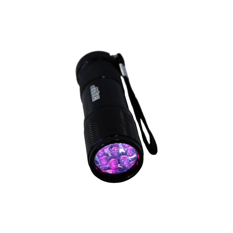 - LEDs: 9, Wavelength: 365-370 nanometer; Powered by 3 x AAA batteries (not included);