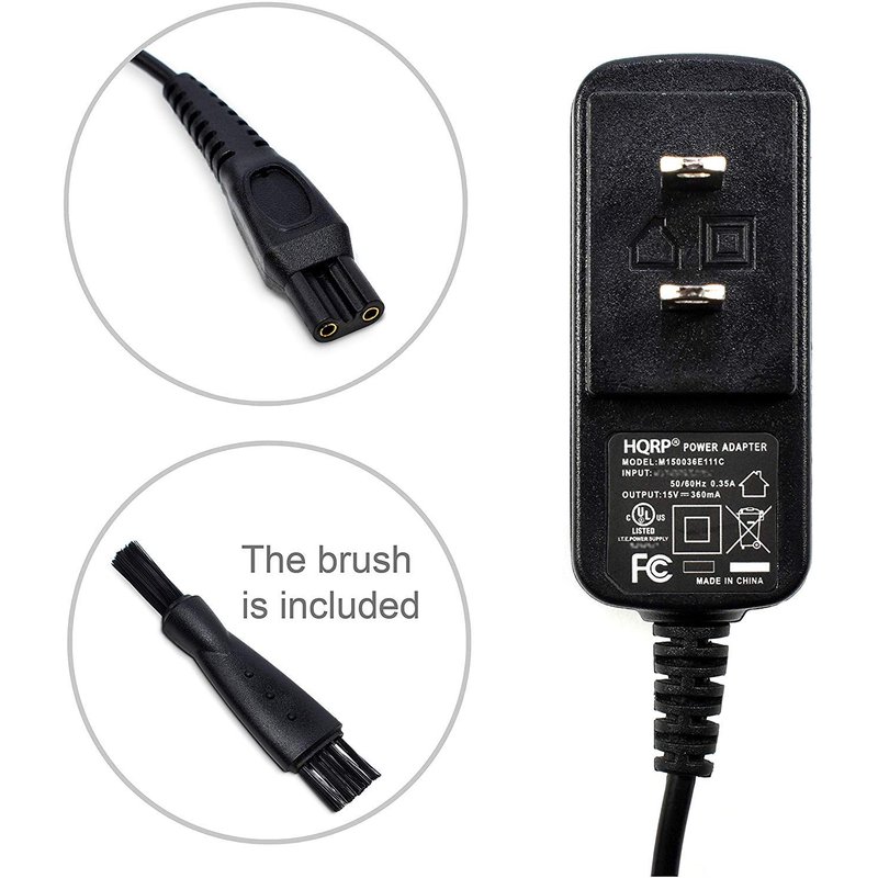 HQRP AC Adapter/Power Cord Compatible with Philips Norelco 5100 5200 Series S5210 S5290 7825XL 7845XL 7864XL 7865XL 7866XL 7867XL QP6510 QP6520 Coolskin Nivea Range Shaver Plus Cleaning Brush