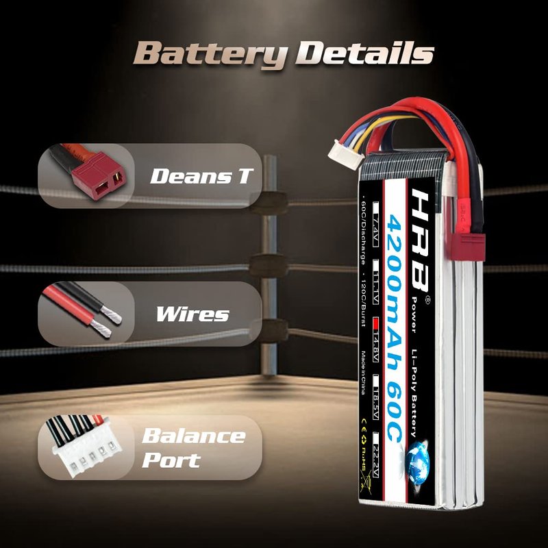 HRB 4S Lipo Battery 14.8V 4200mAh 60C T Lipo Battery Compatible with RC Car RC Plane RC Truck RC Boat