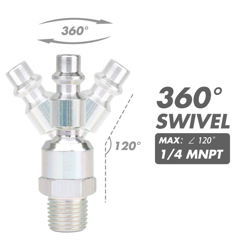 - SWIVEL QUICK PLUGS - The special design of 1/4" basic swivel body, preventing hose kinks and increasing mobility, great for air tools to reduce strain on wrist and air hose. Made of high-quality corrosion resistant zinc plated hardened steel, solid body for use of a longer life. The maximum operating pressure is 300 psi.