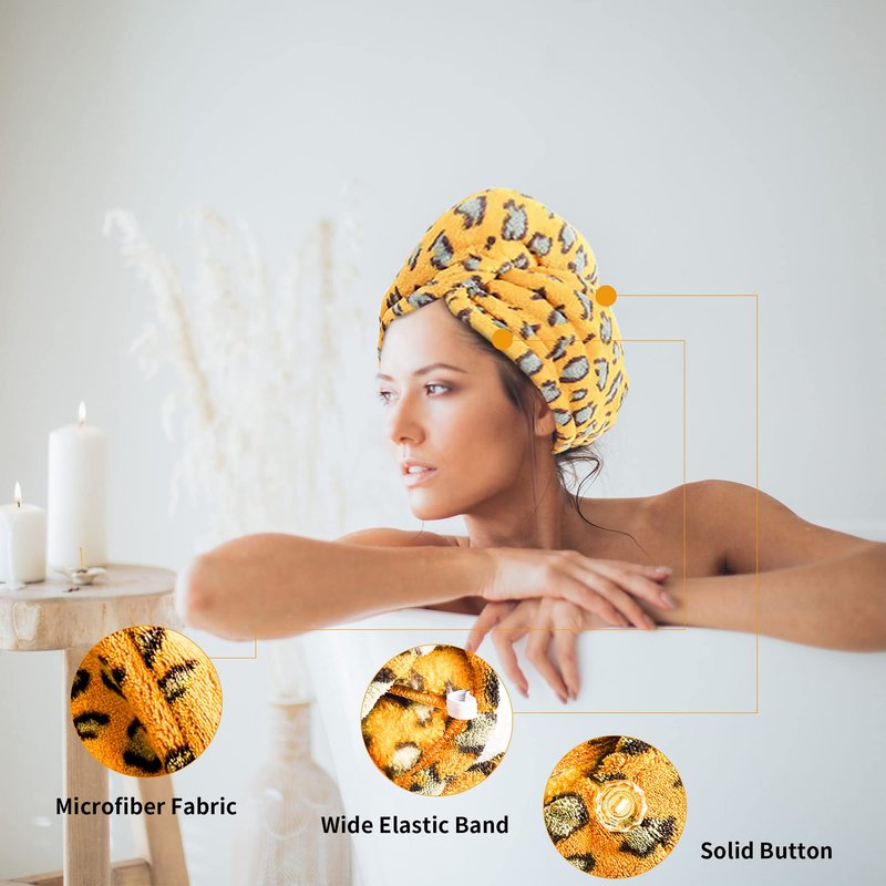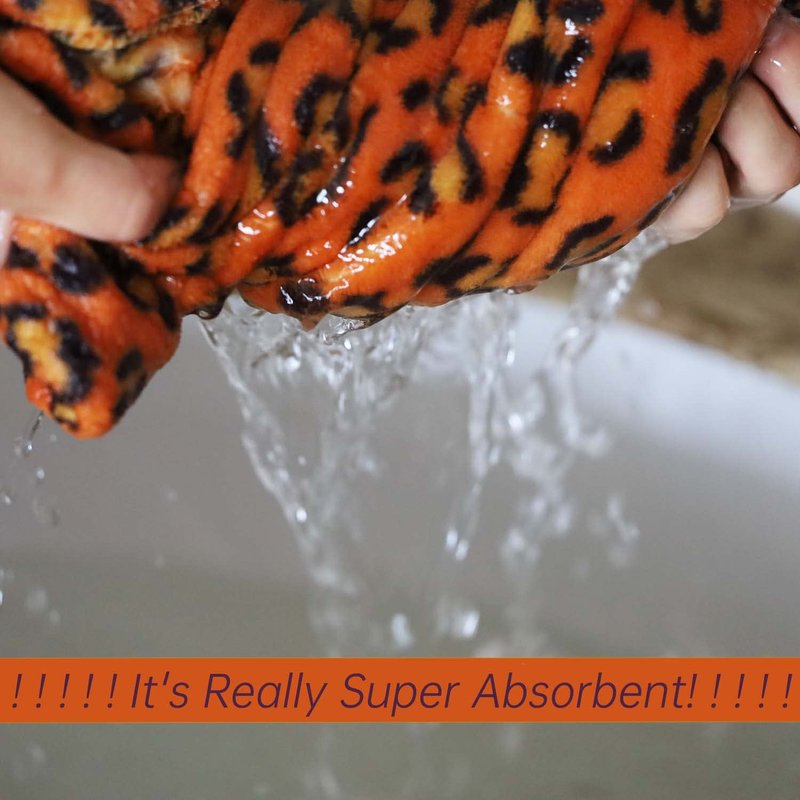 - 【Not Ordinary Towels】 The leopard print magic instant dry hair towel are made of super-absorbent microfiber fabric that is extremely soft to the touch, super absorbent, fast drying,breathable,tasteless and NO LINT LOSS!!! Compared with traditional towels, you don't need any hard rubbing to remove excess moisture from your hair. Natural air drying can make your hair dry faster and save you a lot of time.25x10 inch magic instant dry hair towel, enough to wrap your hair completely.