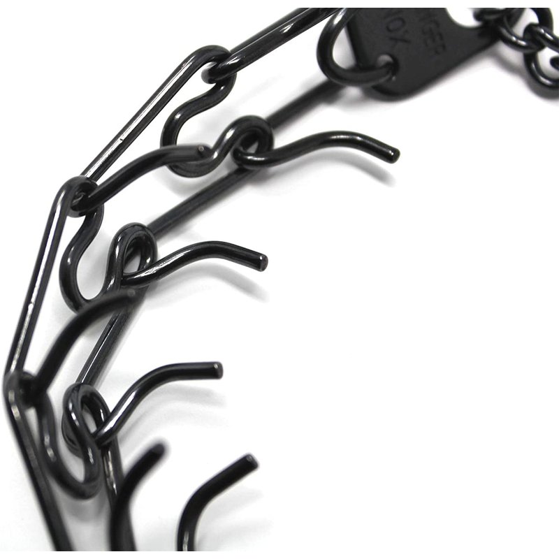 - Black Stainless Steel Prong Collar: This model comes with two O rings: Size Small, 2.25 mm x 16 inches overall collar length; neck size Up To 13 inches