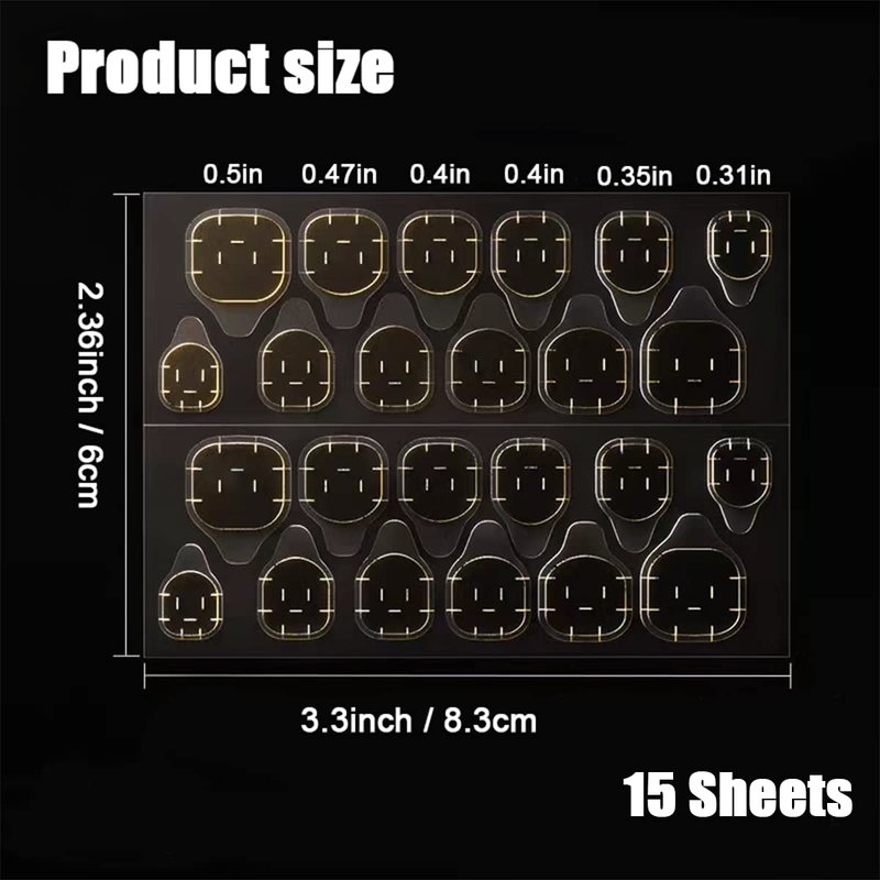 15 Sheets Nail Adhesive Tabs (24 pcs per sheet, 6 different size nail tabs in each sheet, Total 360pcs)