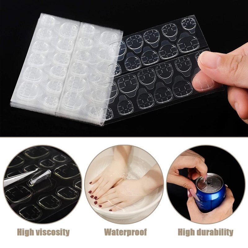 Hsathoac 15 Sheets (360pcs) Double-Sided Nail Adhesive Stickers, Super Sticky Fake Nail Glue Stickers, Fake Nail Tips, Waterproof Breathable Nail Jelly Glue Tabs, Adhesive Tabs for DIY Manicure