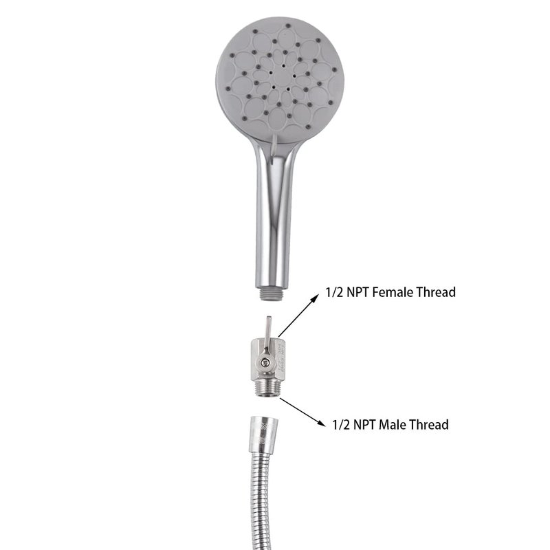- The 1/2" standard NPT thread can match most shower pipes and shower heads in the United States.