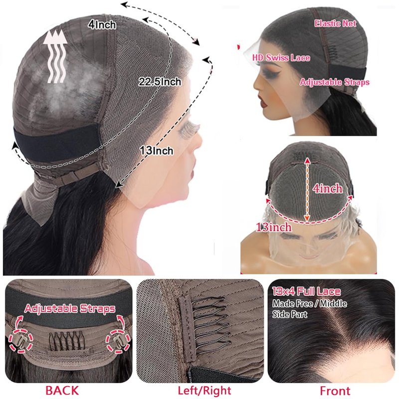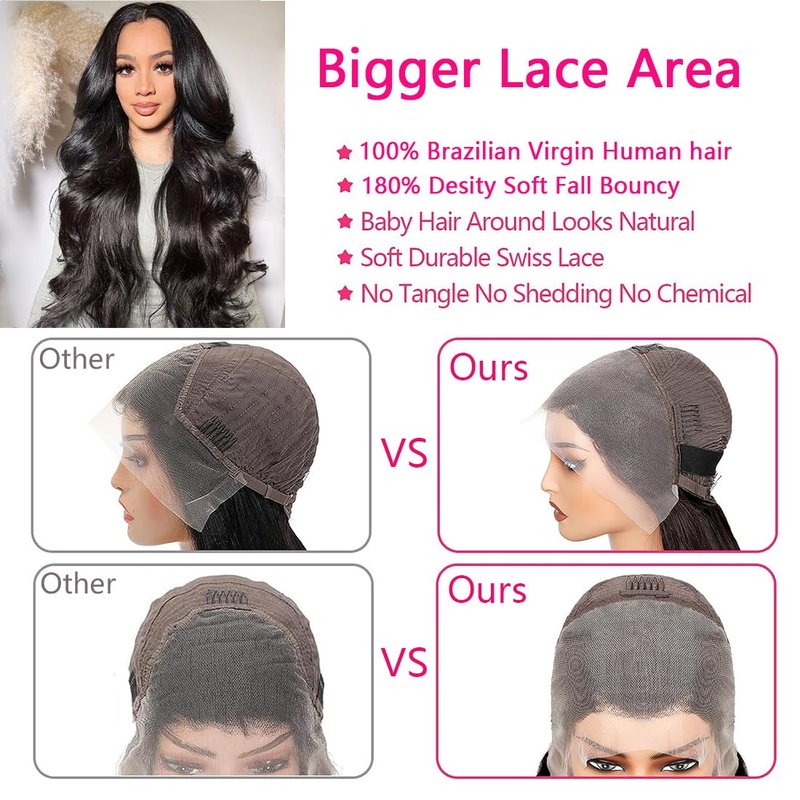 Body Wave Lace Front Wigs Human Hair Lace Frontal Wigs Material: 100% Unprocessed Brazilian Virgin Body Wave Wigs Human Hair 180% Density, Full and Thick, 10A Grade Body Wave Full Lace Human Hair Wigs, Cut from Young Girl Head Directly, Natural and Healthy, Soft and Comfortable. Lace Front Wigs Human Hair : HD Transparent Lace Wig, Melt Prefectly with ALL Skin Tone,13x4inch 180% Density ,Long Parting Space in Front, 22.5inch Medium Size Cap and with a Adjustable Straps and 4 Combs,More Comfortable To Wear. Lace Front Wigs Quality: 13x4 Body Wave Human Hair Lace Front Wigs, True to Length & Weight, No Smell, Tangle-free, Minimal Shedding;Can be Straightened, Can Be Side Part, Middle Part, High Ponytail& Bun, Styled as You Like.