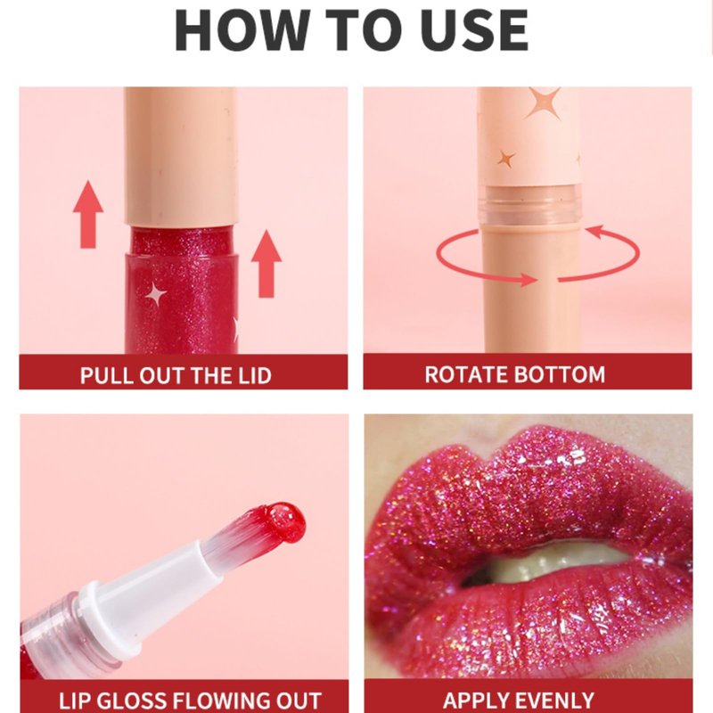 - Shiny And Glossy Lip Gloss Rotary Pen: using colored glaze and glitter formula, using a convenient and easy-to-use sponge brush applicator, the luminous effect varies with different angles, and the sparkling and full lip oil presents a beautiful luster.