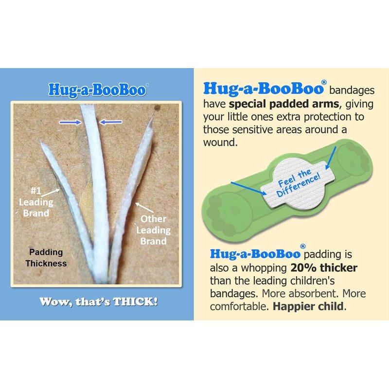 - More Than Just Another Cute Bandage. Hug-a-BooBoo’s unique premium padding has small extensions that give extra protection to sensitive areas around a wound. Our padding is also thicker than other brands for extra comfort and absorbency. That’s a special hug!