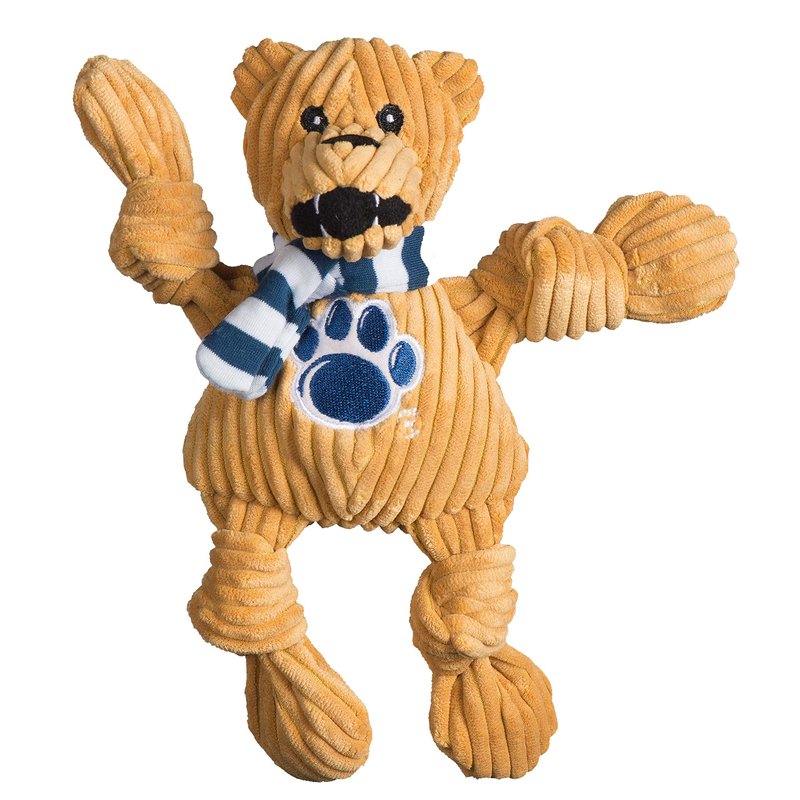 Officially licensed Penn State Nittany Lion plush dog toy combines HuggleHounds quality with collegiate licensing, we’re bringing university-branded toys to shoppers all across the country – school friends, fans and alumni –we like to call them our HuggleHounds University “fan-amily!" HuggleHounds University is truly the next-gen class of school-branded dog toys – with HuggleHounds beloved status, style, spirit and spunk on full display. Knotties are the most durable plush dog toys available, made for dogs and puppies. Made with exclusive Tuffut Technology, a durable two-layer lining on the inside, soft and cuddly on the outside. Natural tugging instincts are satisfied by the soft fabric, knots in the limbs and 5 squeakers. The large size is about 15” long, 7” wide and 5” deep. The small size is about 9” long, 4” wide and 3” deep. All Hugglehounds plush toys can be machine washed over and over!