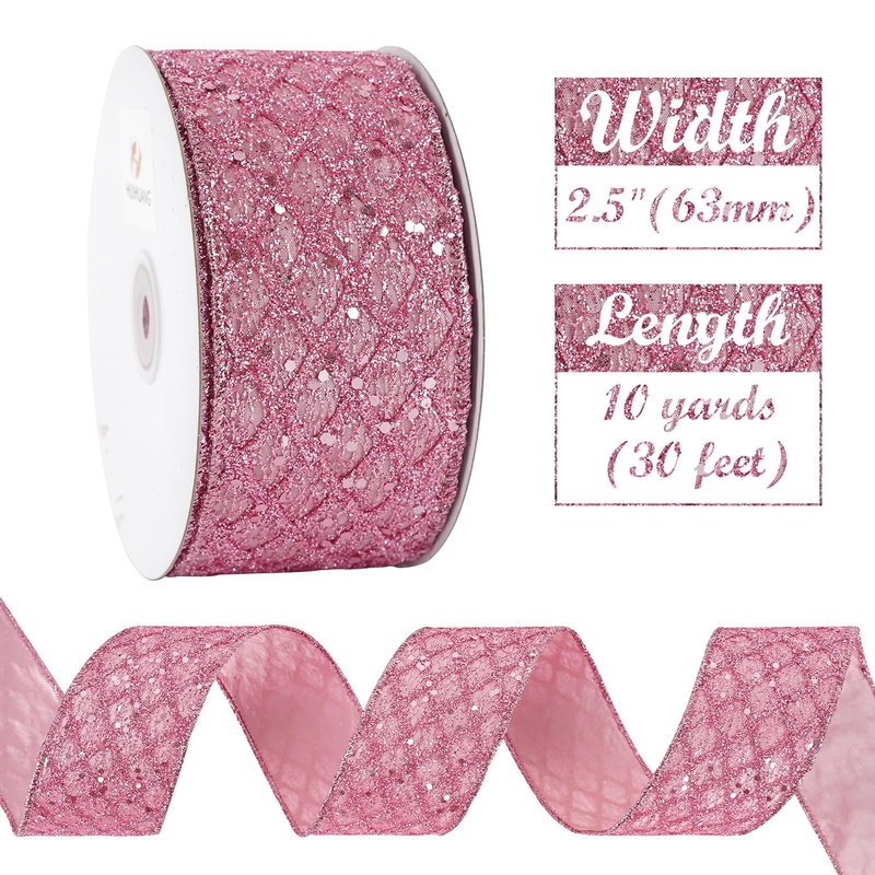 - Color: Pink glitter wired ribbon brings a bright and beautiful sparkly touchness to your decoration craft ideas and holiday gift wrapping, especially for Christmas tree decorations