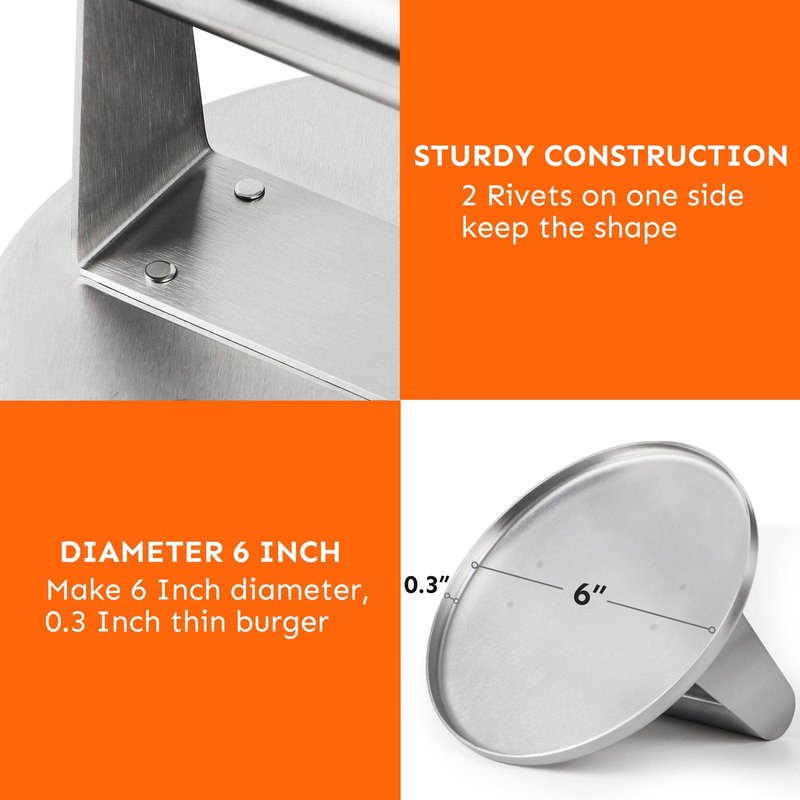 - Would you like to create mouthwatering, restaurant-quality thin smashed burgers? Look no further than this stainless steel press, designed for just that purpose. The burger smasher ensures even heat distribution for cooking incredibly thin, crispy smashed burgers like a pro chef.