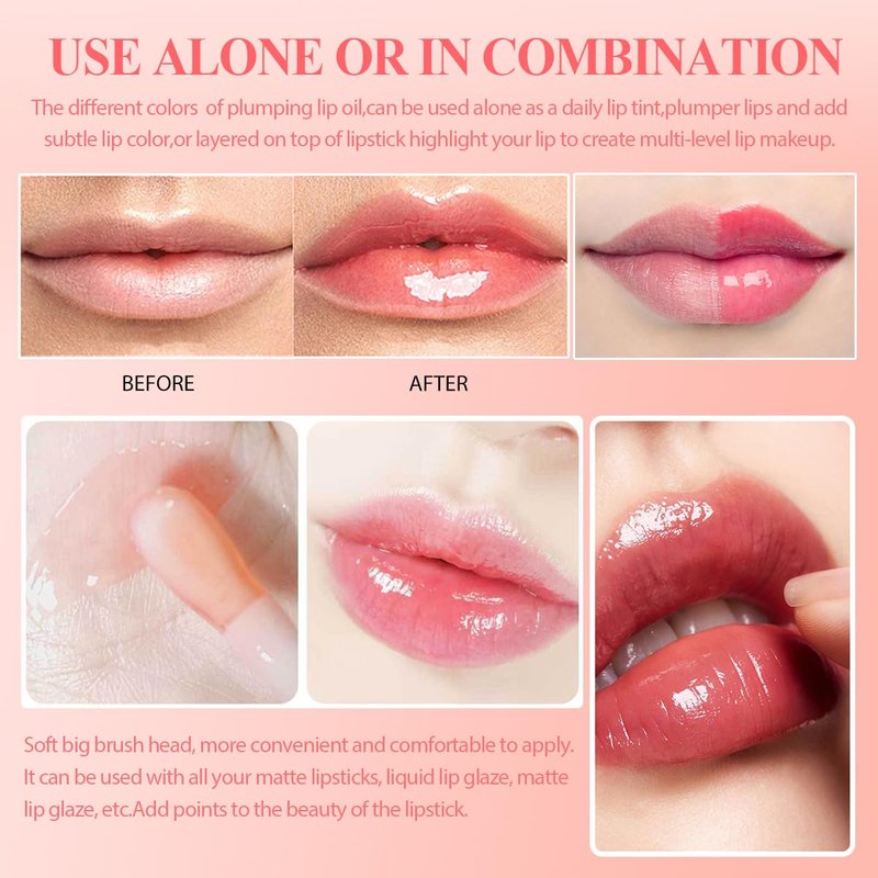 - Use Alone Or In Combination:The different colors of plumping lip oil,can be used alone as a daily lip tint,plumper lips and add subtle lip color,or layered on top of lipstick highlight your lip to create multi-level lip makeup