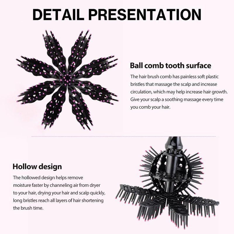 - Cuts Drying Time To Half:The hollowed design helps remove moisture faster by channeling air from dryer to your hair,drying your hair and scalp quickly,long bristles reach all layers of hair shortening the brush time
