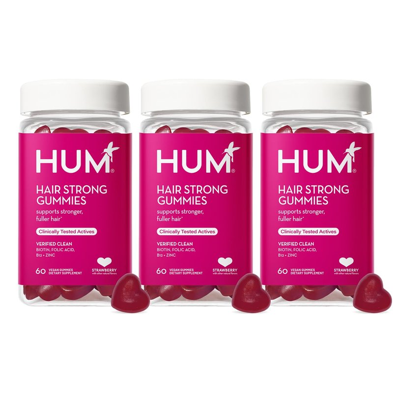 HUM Hair Strong - Daily Gummies with Biotin to Combat Hair Loss & Thinning - Fo Ti, Folic Acid, Zinc, Vitamin B12 & PABA to Support Healthy Hair, Skin and Nails (90-Day Supply)