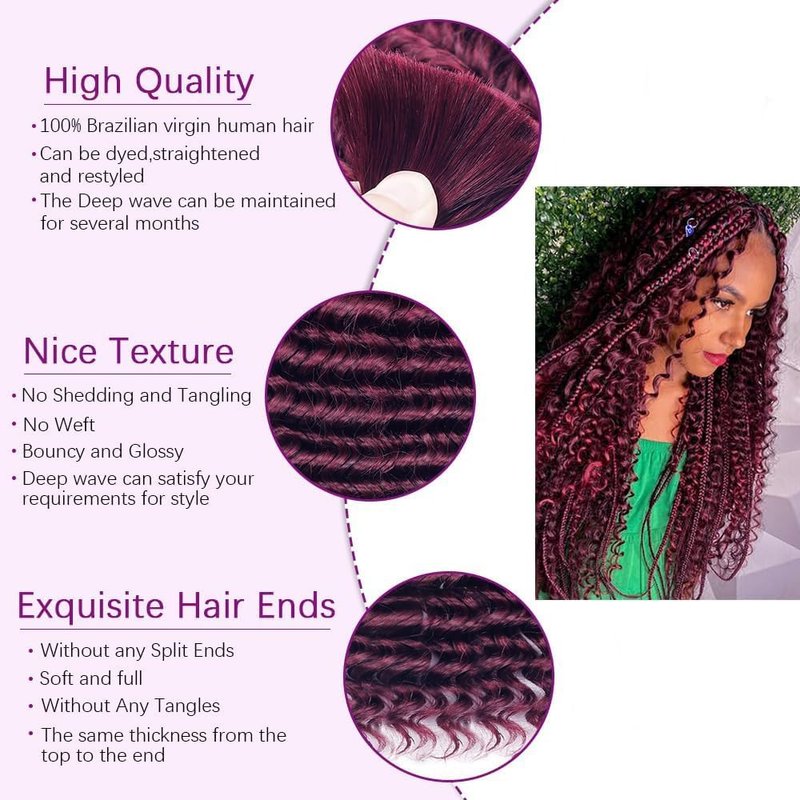 - 4. Unique design: Deep wave human braiding hair is the most suitable hair extension for braiding, because deep wave bulk human hair no weft won’t hurt your scalp, silk and soft.