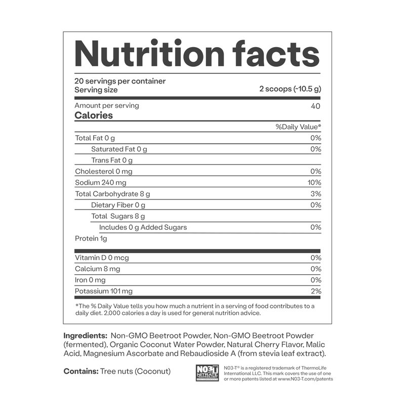 HumanN SuperBeets Sport Endurance Pre Workout Powder, Nitric Oxide Supplement, NSF Certified, Stimulant & Caffeine Free, Made with Beet Root, Wild Cherry, 20 Servings