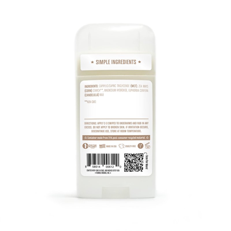 Humble Brands Natural Deodorant provides you with 100% vegan and cruelty-free odor protection that works to keep you fresh all day long. Humble Brands Deodorants is made in small batches in Taos, NM, using only 4 simple ingredients plus essential oils and botanicals. Humble Brands is formulated using MCT Oil, non-GMO cornstarch, magnesium hydroxide, and Wild Candelilla Wax to provide an effective and safe formula for sensitive skin. Maximum order protection is provided in an aluminum-free formula that leaves you feeling dry and confident all day long.
