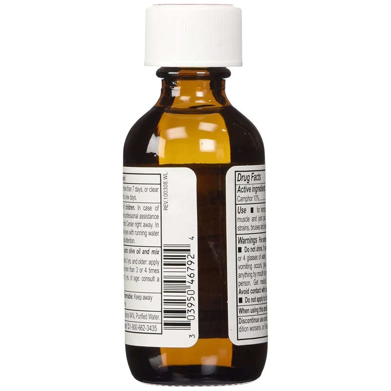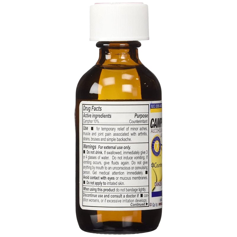 Traditional health care products.Purpose:CounterirritantManufacturer:HumcoActive Ingredients:Camphor 10%Directions:Adults and children 2 yrs and older: Apply to affected area not more than 3 or 4 times daily.Inactive Ingredients:Alcohol 84%; Purified WaterUses:For temporary relief of minor aches and pains of muscles and joints associated with simple backache, arthritis, strains, bruises and sprains.Warnings:For External Use Only. Do not drink. Do not apply to irritated skin. Avoid getting in the eyes or on mucous membranes. If swallowed, immediately give 3 or 4 glasses of water. Do not induce vomiting. If vomiting occurs give fluids again. Do not give anything by mouth to an unconscious or convulsing person. Get medical attention immediately. Flammable. Keep away from spark, heat and flame.