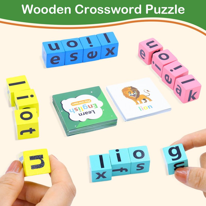 - 【FUN TO PLAY】: Our word race cube game is suitable for 1+ players and for ages 3+. Here 4 different colors wooden letter blocks, Everyone match the color blocks, than pick a flashcard at random. who can spell the correct word with blocks quickly. Whoever gets more cards wins in the end. You also can play the letter games match your own spelling game and activities via imagination. Build kid's confidence and improve vocabulary while play