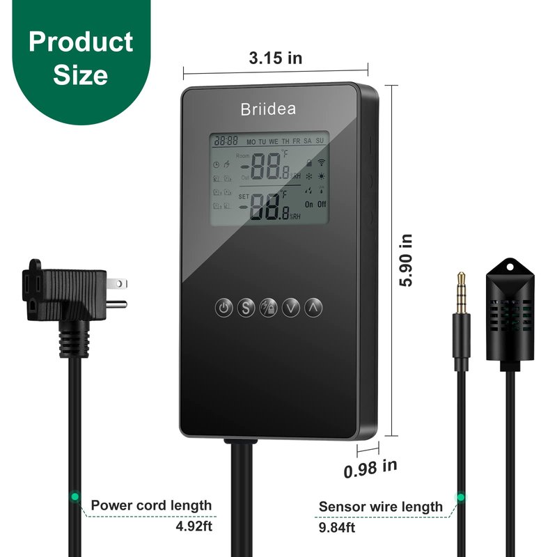 Humidity Controller, Briidea Pre-Wired Humidistat Humidifier Dehumidifier with LCD Display High Accuracy Humidity Sensor, Ideal for Greenhouse Mushroom Grow Tent