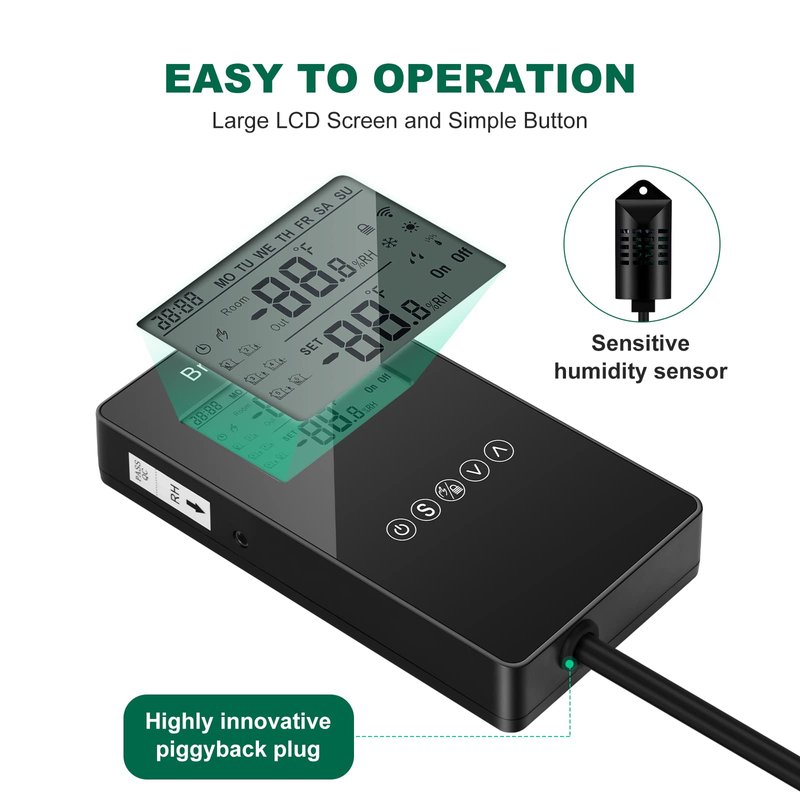 - MULTIFUNCTION: The humidity controller has a series of practical functions, including dehumidification and humidification mode, manual and automatic mode, high or low humidity alarms etc. Turn on/off your equipment automatically to reach the ideal humidity level. Humanized intelligent operation design is realized