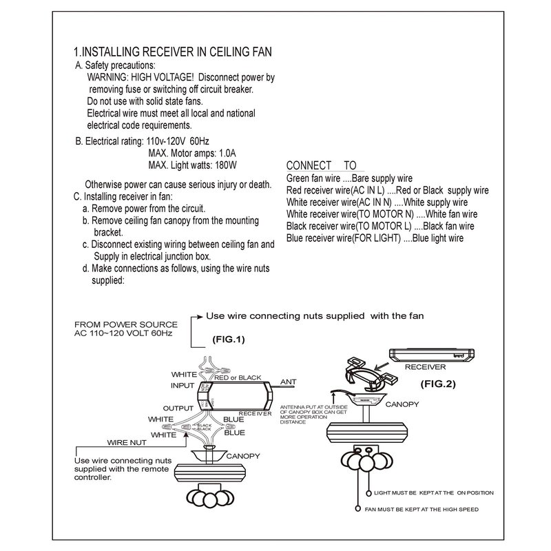 - 【 NOTE 】 If you have PULL CHAINS SWITCH, before using the wireless remote control, use the PULL CHAINS SWITCH to turn the wind speed to maximum and turn the fan light on. Only in this way can the PULL CHAINS SWITCH and wireless remote control be used together.