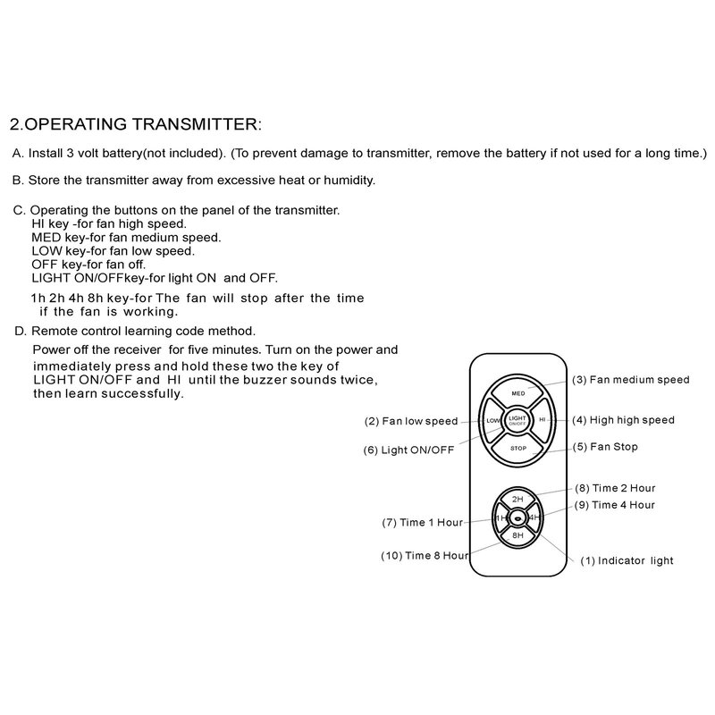 - 【 NO Buzzer noise 】 NO dimming function This universal ceiling fan remote is Designed to be no buzzer noise so as not to affect others , only control by turn ON/OFF.