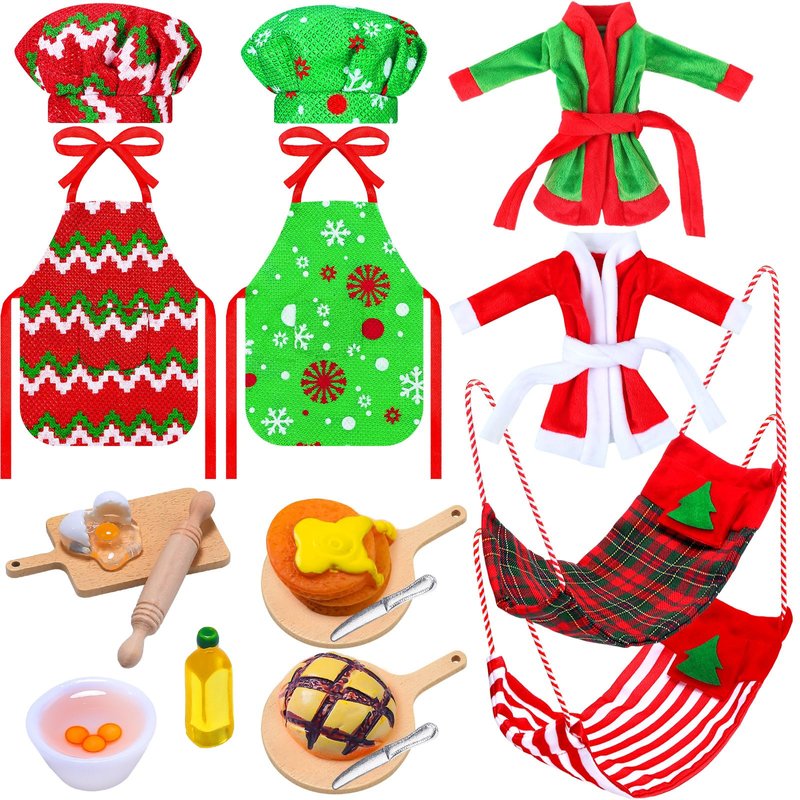 - Elf Doll Baking Set: this elf doll baking set contains 2 sets of Christmas elf doll chef hat and aprons, 2 dressing gowns, 2 hammocks, 1 set of rolling pin egg bowl and 2 sets of cookie and cookie tray, all in one pack to save your time and energy to pick one by one, such a nice combination that can decorate your elf dolls and other dolls; Please note that dolls are not included