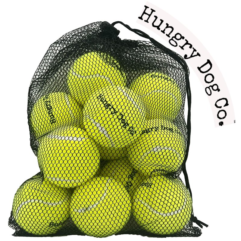 Hungry Dog Co. - 12 Pack of Premium Dog Tennis Balls 2.5" - Pet Safe Dog Toys for Exercise and Training. Bouncy and Durable for Hours of Fun - Reusable Mesh Bag for Carrying and Storage - Yellow