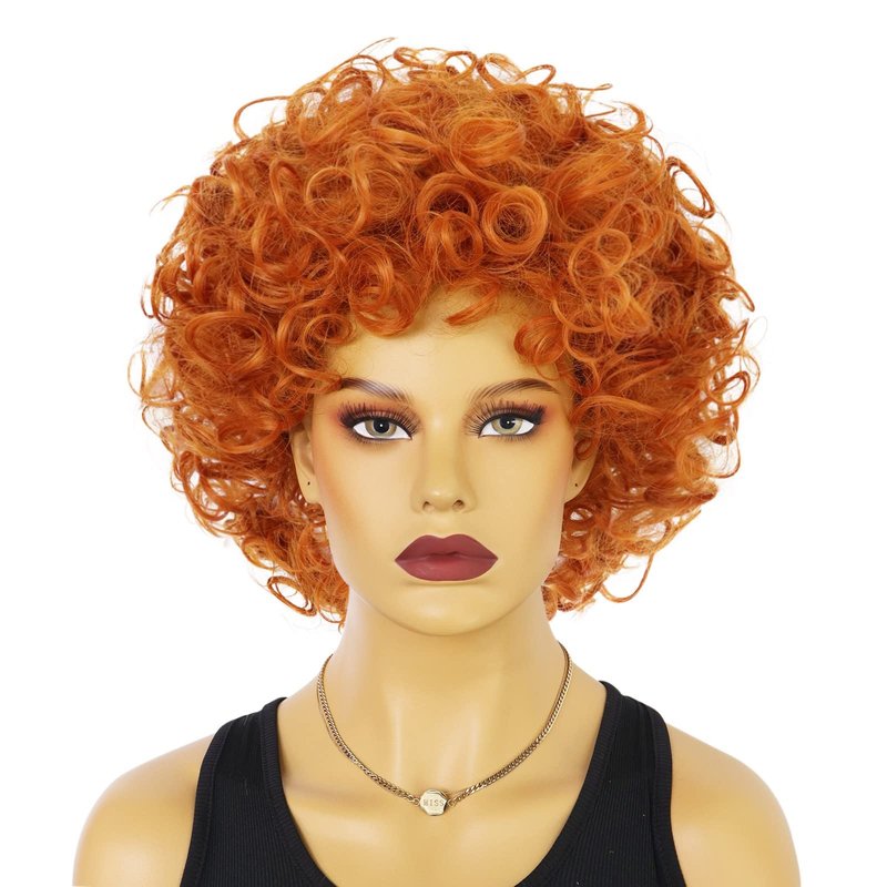 HUNIGIR Orange Curly Wig Women Short Afro Wig 70s Orange Wig for Unisex Adult Heat Resistant Synthetic Cosplay Halloween Costume Wig (Orange)