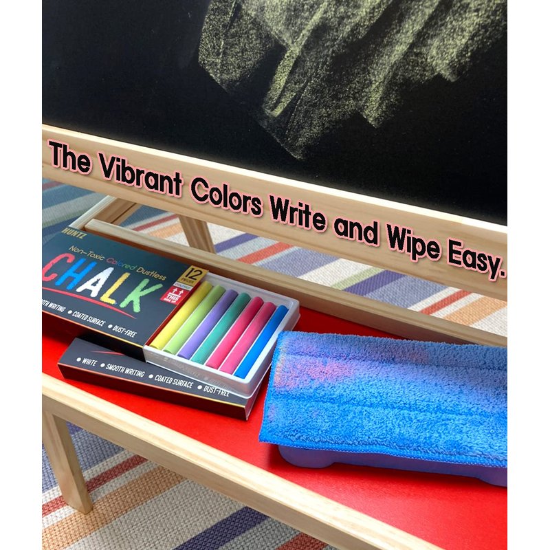Great for the classroom & homeschooling Dustless Chalks : Coated Surface, Non-Toxic, Smooth & Clean Writing Premium Quality Microfiber Eraser : Washable & Reusable Erases Better Than Everything Else Damage-proof packaging, Blister-Packaged for Safe-Keeping