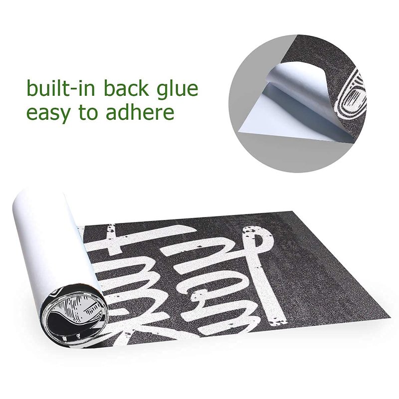 - MATERIAL- Emery and PVC. Our skateboard grip tape made of emery on the surface, made of PVC on the back. Super sticky, wear-resistant, anti-slip and waterproof.