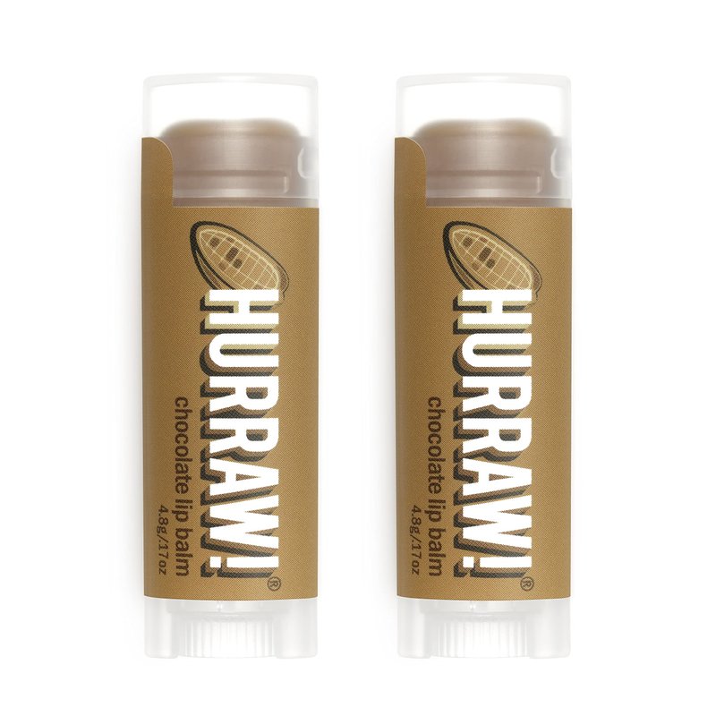 - TWO 4.8g/.17oz Oval Tubes of Chocolate Lip Balm packaged in a white HURRAW! branded pillow box. Unsweetened, raw chocolate is in the house! It won't leave any color on your lips but the creamy, "tootsie-rollish" chocolatey-ness will soothe your cravings! Choco. Love. Made with certified organic, vegan, and raw ingredients. Hurraw! Lip Balms are certified 100% all natural origin, cruelty and gluten free. Non-GMO. Bee, Shea, Soy and Palm Free.