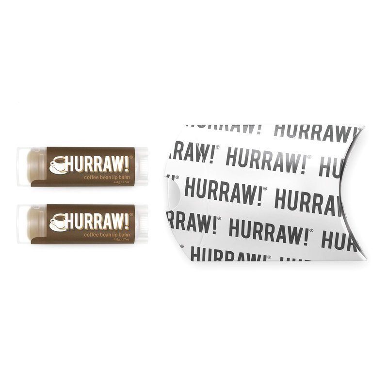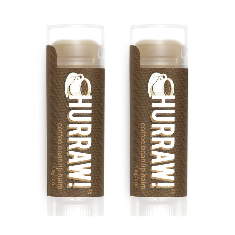 - TWO 4.8g/.17oz Oval Tubes of Coffee Bean Lip Balm packaged in a white HURRAW! branded pillow box. Coffee bean extract and a touch of raw chocolate gives our balm a mild coffee-choco flavor and buzz. Not your normal cup-o-joe! Made with certified organic, vegan, and raw ingredients. Hurraw! Lip Balms are certified 100% all natural origin, cruelty and gluten free. Non-GMO. Bee, Shea, Soy and Palm Free.