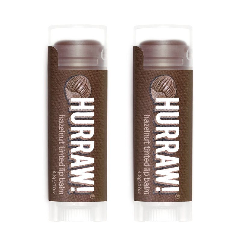 - TWO 4.8g/.17oz Oval Tubes of Hazelnut Tinted Lip Balm packaged in a white HURRAW! branded pillow box. Cacao & bhringraj come together for a SHEER SUNSET BROWN TINT. Plant-based. Mild, yet delicious, hazel-nutty treat! Made with certified organic, vegan, and raw ingredients. Hurraw! Lip Balms are certified 100% all natural origin, cruelty and gluten free. Non-GMO. Bee Free, Shea Free, Soy Free and Palm Free.