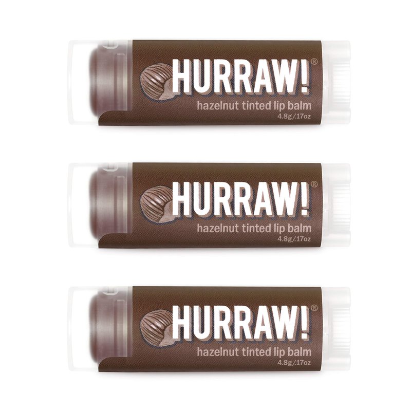- THREE 4.8g/.17oz Oval Tubes of Hazelnut Tinted Lip Balm packaged in a white HURRAW! branded pillow box. Cacao & bhringraj come together for a SHEER SUNSET BROWN TINT. Plant-based. Mild, yet delicious, hazel-nutty treat! Made with certified organic, vegan, and raw ingredients. Hurraw! Lip Balms are certified 100% all natural origin, cruelty and gluten free. Non-GMO. Bee Free, Shea Free, Soy Free and Palm Free.