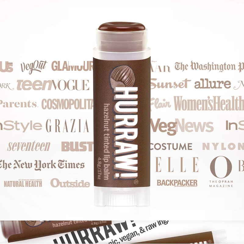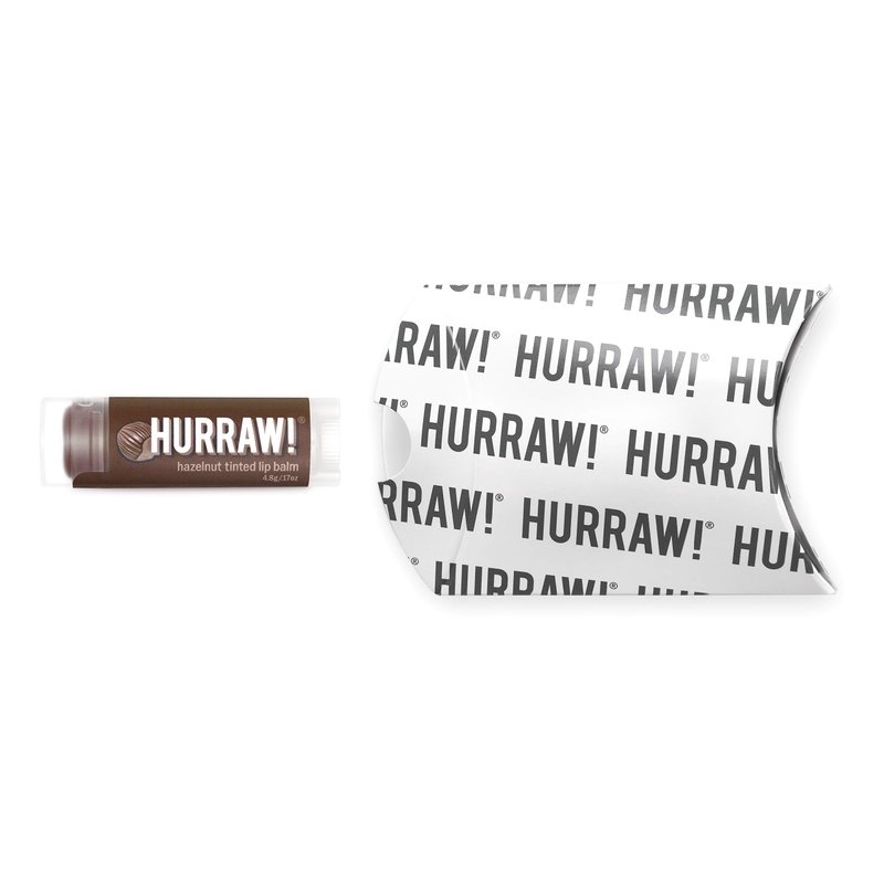 - ONE 4.8g/.17oz Oval Tube of Hazelnut Tinted Lip Balm packaged in a white HURRAW! branded pillow box. Cacao & bhringraj come together for a SHEER SUNSET BROWN TINT. Plant-based. Mild, yet delicious, hazel-nutty treat! Made with certified organic, vegan, and raw ingredients. Hurraw! Lip Balms are certified 100% all natural origin, cruelty and gluten free. Non-GMO. Bee Free, Shea Free, Soy Free and Palm Free.