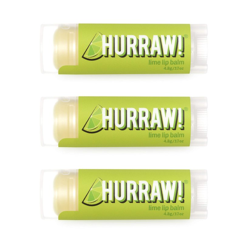 - THREE 4.8g/.17oz Oval Tubes of Lime Lip Balm packaged in a white HURRAW! branded pillow box. Tiny green giants! Just like squeezing a lime slice in your favorite summer drink or remembering those limeade popsicles of youth... Persian lime oil lends our lime balm some serious zest! Made with certified organic, vegan, and raw ingredients. Hurraw! Lip Balms are certified 100% all natural origin, cruelty and gluten free. Non-GMO. Bee, Shea, Soy and Palm Free.