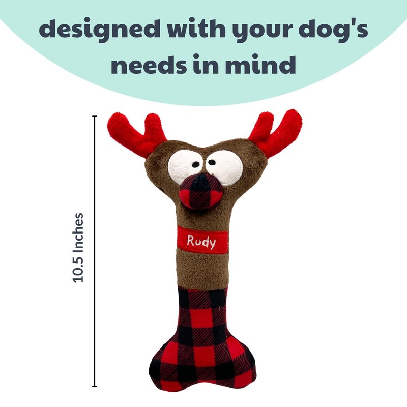 Huxley & Kent for Dogs | Reindeer Bone | Christmas Holiday Power Plush Dog Toy with Squeaker | Funny Dog Toy Gift | Fun, Durable, and Safe | H&K Squeaky Dog Toys
