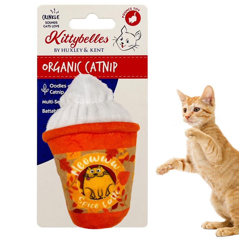 Huxley & Ket Plush Cat Toy | Meowww Spice Latte | Fall Season Strong Catnip Filled Cat Toy | Plush Interactive Kitten and Cat Toy with Catnip and Crinkle | Kittybelles