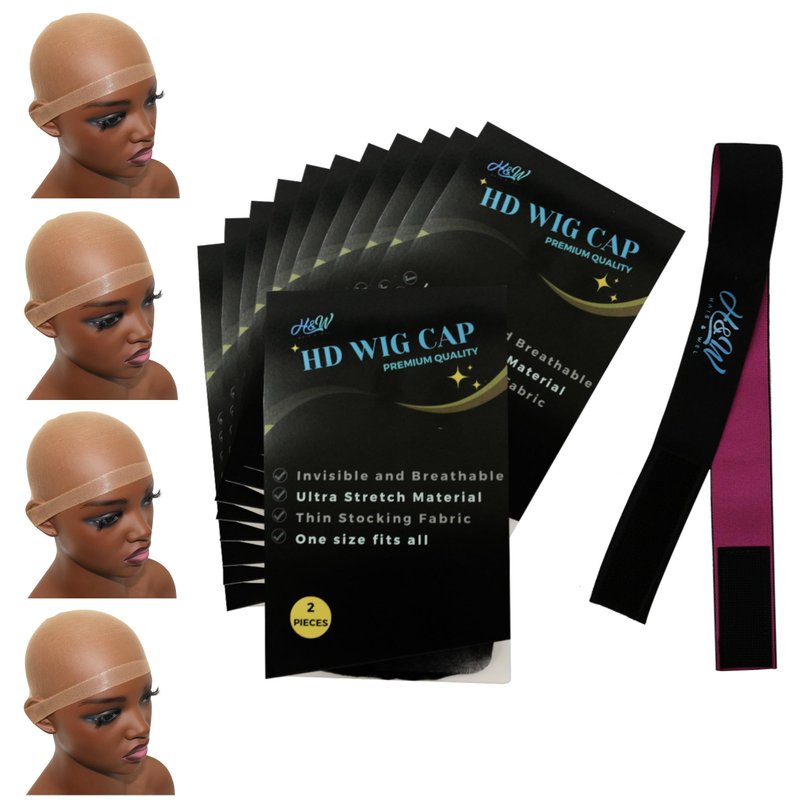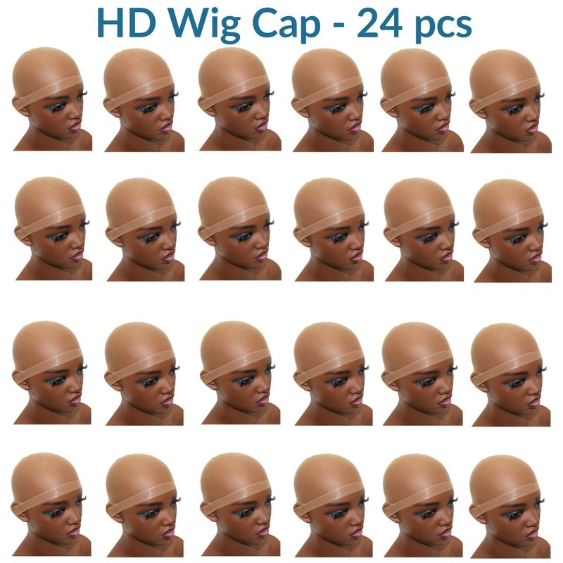 H&W HD Wig Caps Skinlike Real Ultra Thin Stretchy Stocking Sheer Invisible and Breathable Sheer Caps for Women Lace Front Wig (Light Brown, 24 Pieces + 01 Wig Band)