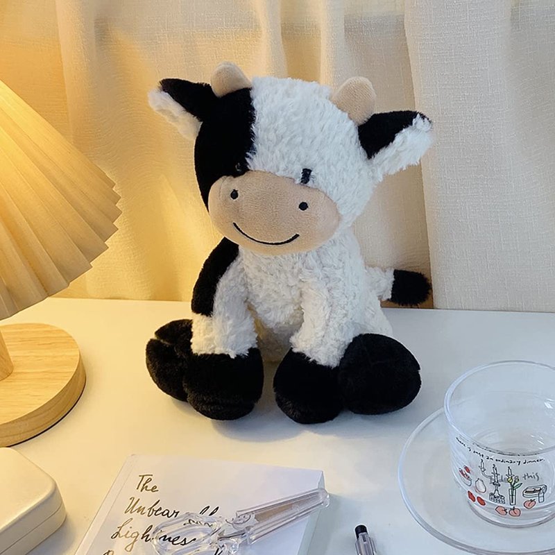 HWD 9.8'' Soft Cow Plush Dolls Stuffed Animals Toys Gifts for Kids, Toddler, Birthday, Valentines, Christmas (Sitting)
