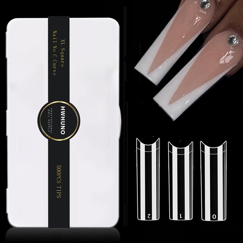 - 【High-quality ABS】HWHUNO XL No c curve square straight nails tips are made of high-quality ABS material, strong, not easy to deform, not easy to break, no smell, a certain thickness and length, no need of trimming, you can use directly
