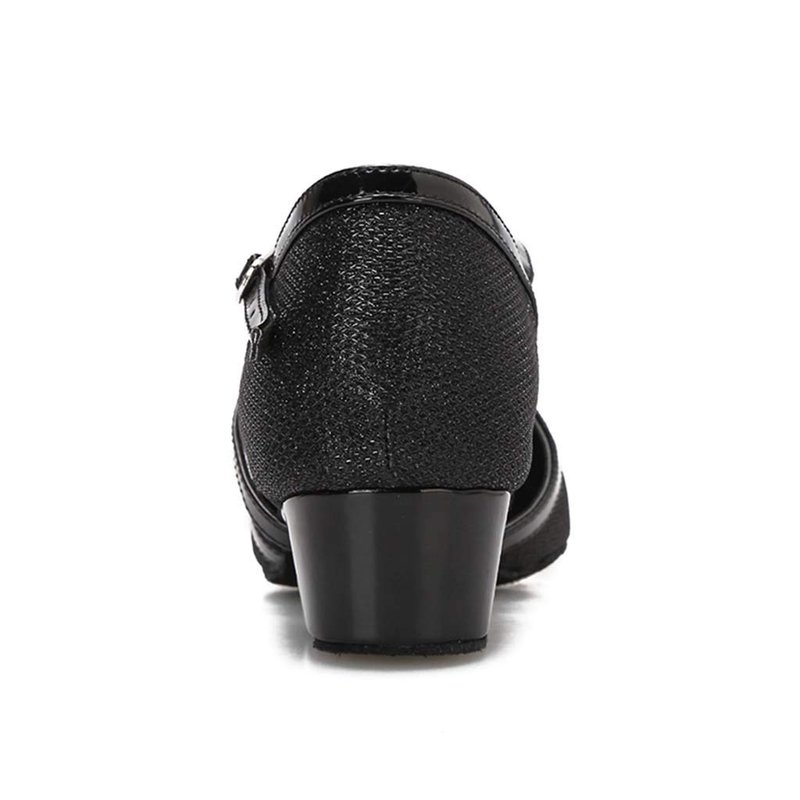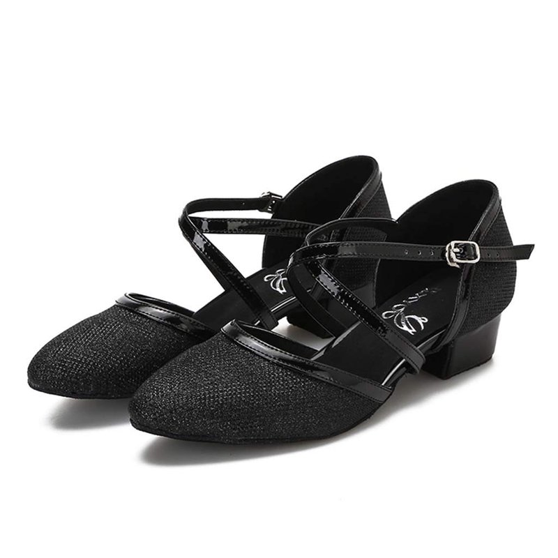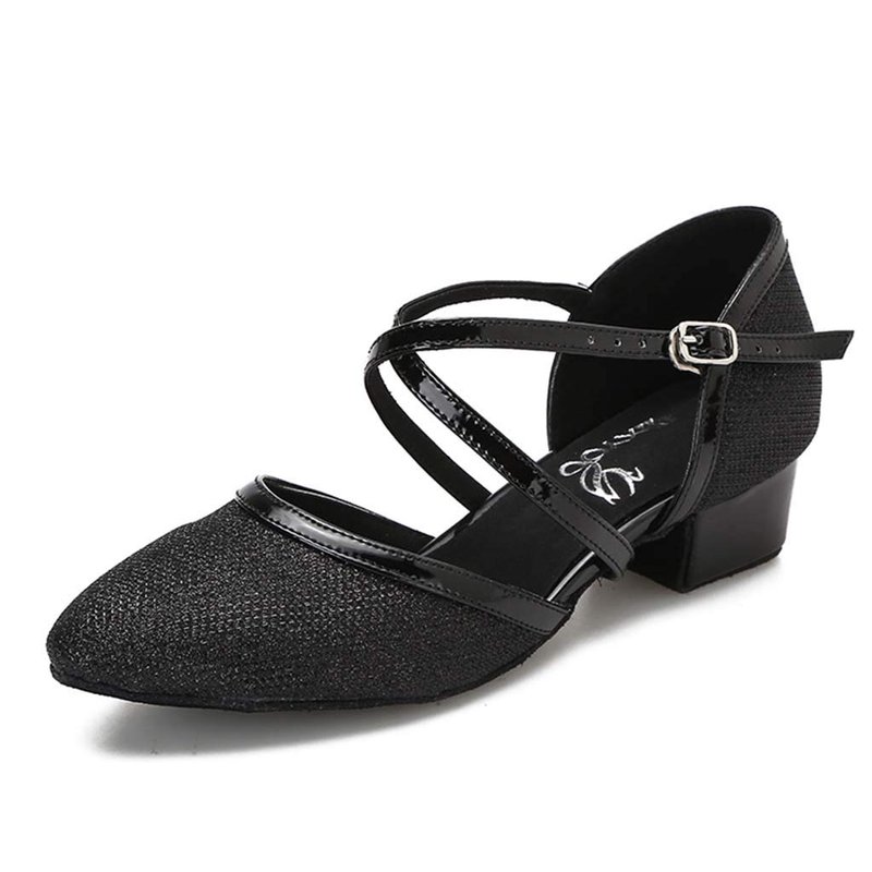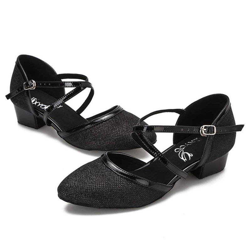 HXYOO Closed Toe Low Heel Glitter Ballroom Dance Shoes for Women Salsa Latin Wedding Party 1 1/2“ Heel S11-1(Black-1 1/2",7)