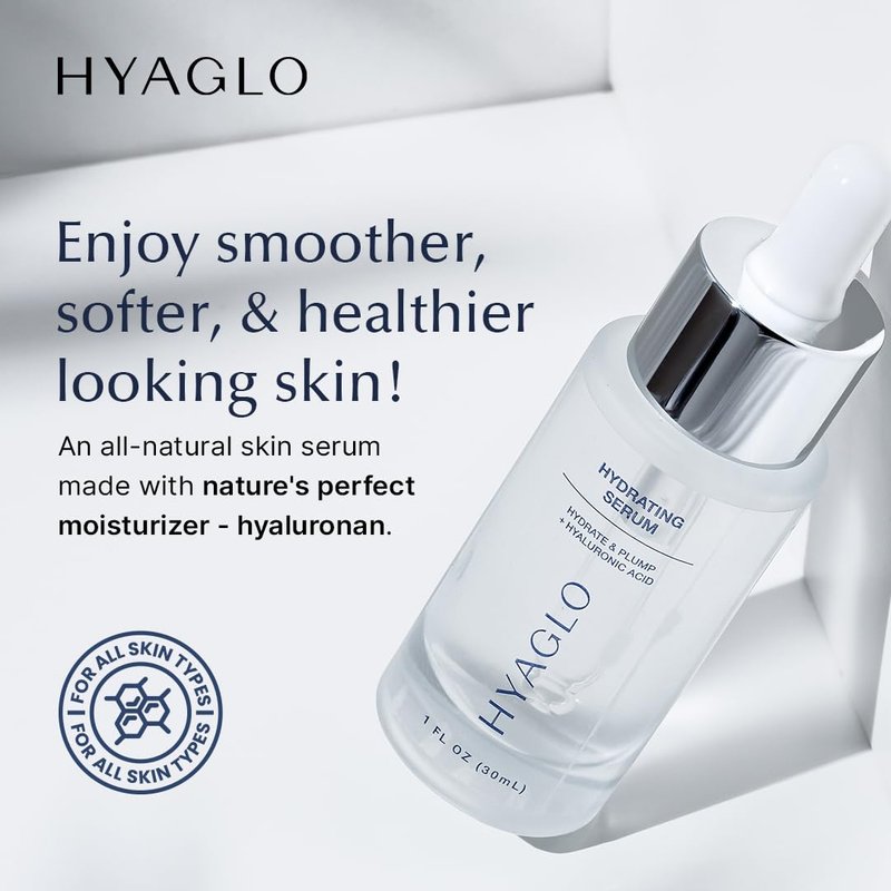 - Achieve plump, glowing, & noticeably smoother skin by hydrating on a deeper level in seconds with HYAGLO Hydrating Serum. Naturally addresses the source of tissue dryness, fine lines, wrinkles, and dry skin. Applied directly to skin resulting in beautiful, deep hydration with optimal firmness - leaving skin dramatically refined, more youthful-looking, & silky smooth.